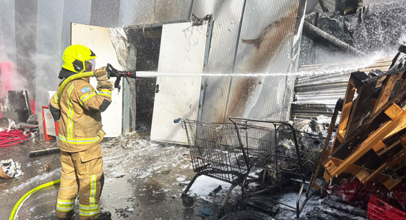 13طاقم إطفاء وانقاذ يعمل على اخماد حريق في مصنع للأغذية في الجليل