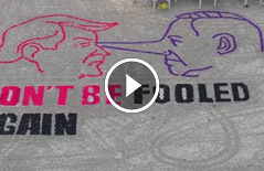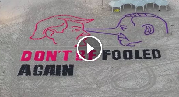 رسالة تعبيرية بالرسم تظهر ترامب ونتنياهو على أحد شواطئ تل أبيب