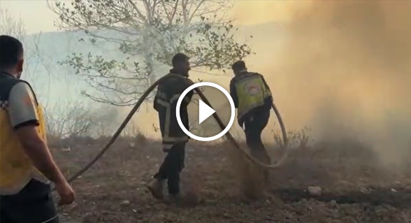 فرق الطوارئ تُكافح حرائق الغابات في ريف اللاذقية بسوريا
