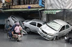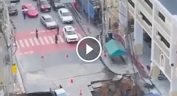 حفرة عملاقة تبتلع شارعا رئيسيا في العاصمة التايلاندية بانكوك