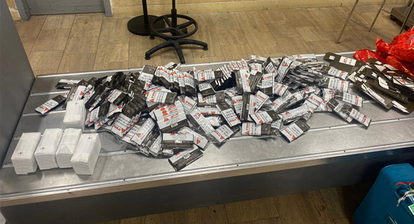 ضبط محققو وحدة المخدرات التابعة للجمارك في مطار بن غوريون، في الأيام الأخيرة، شخصين أحدهما من بين براك، عادا الى البلاد قادمين من جورجيا، وبحوزتهما 40 علبة تبغ للسجائر.