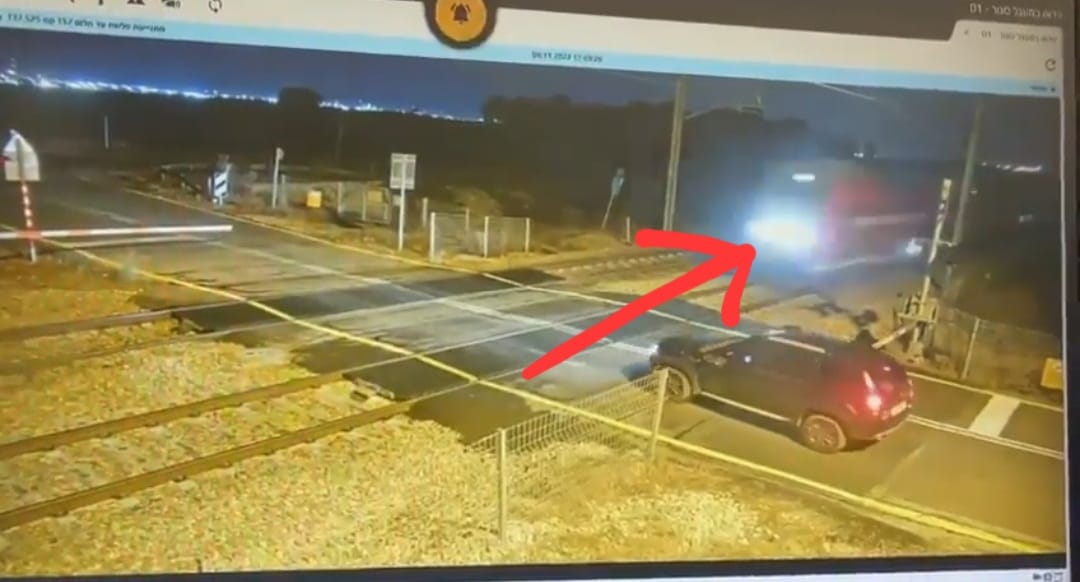 يحدث في البلاد: القطار كاد يحطم سيارة و ‘ يمعسها ‘ ! ، تصوير كاميرات مراقبة