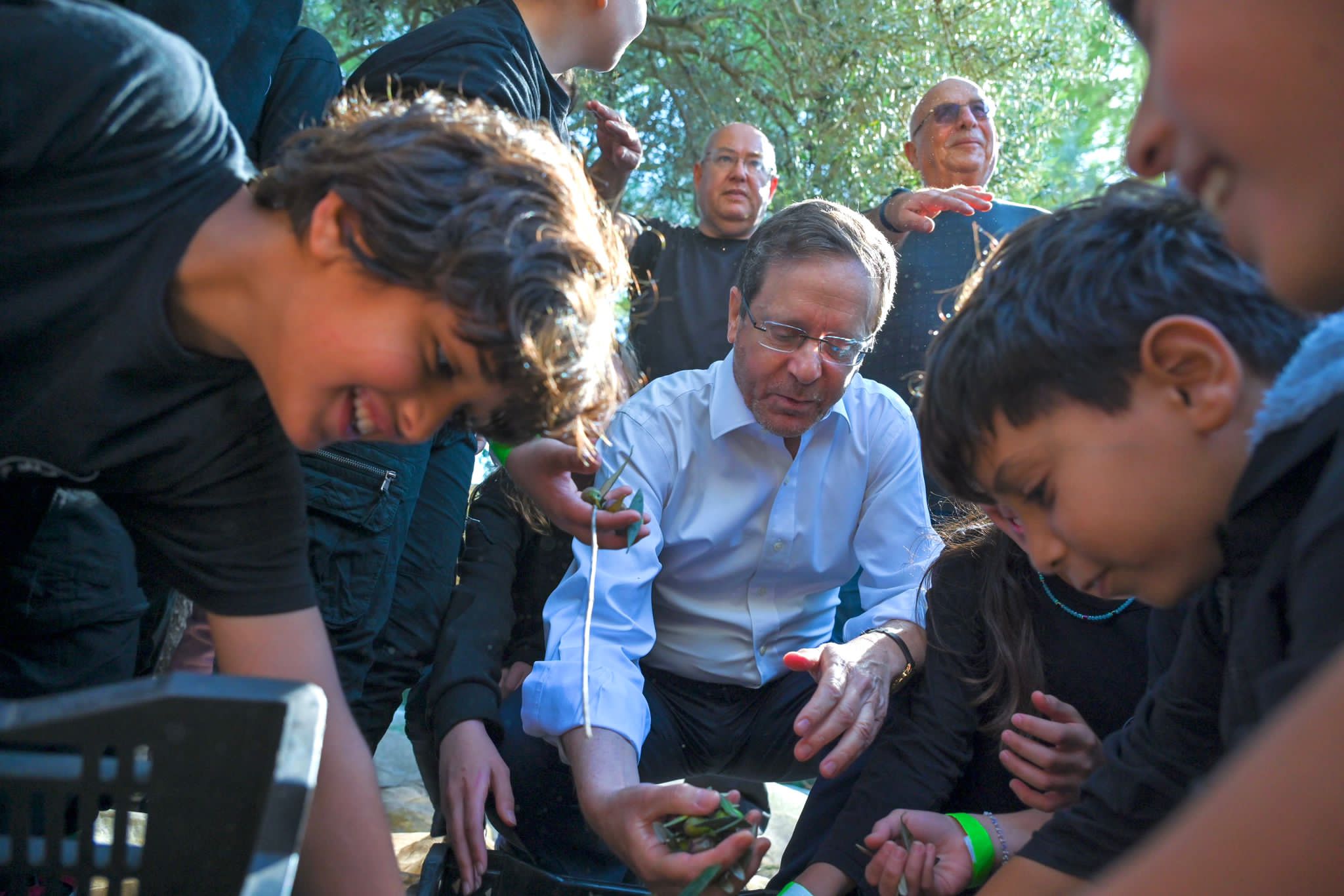 وفقا للعادة التقليدية المتبعة في كل عام ، قام رئيس الدولة يتسحاك هرتسوغ ، وزوجته ميخال ، بقطف الزيتون