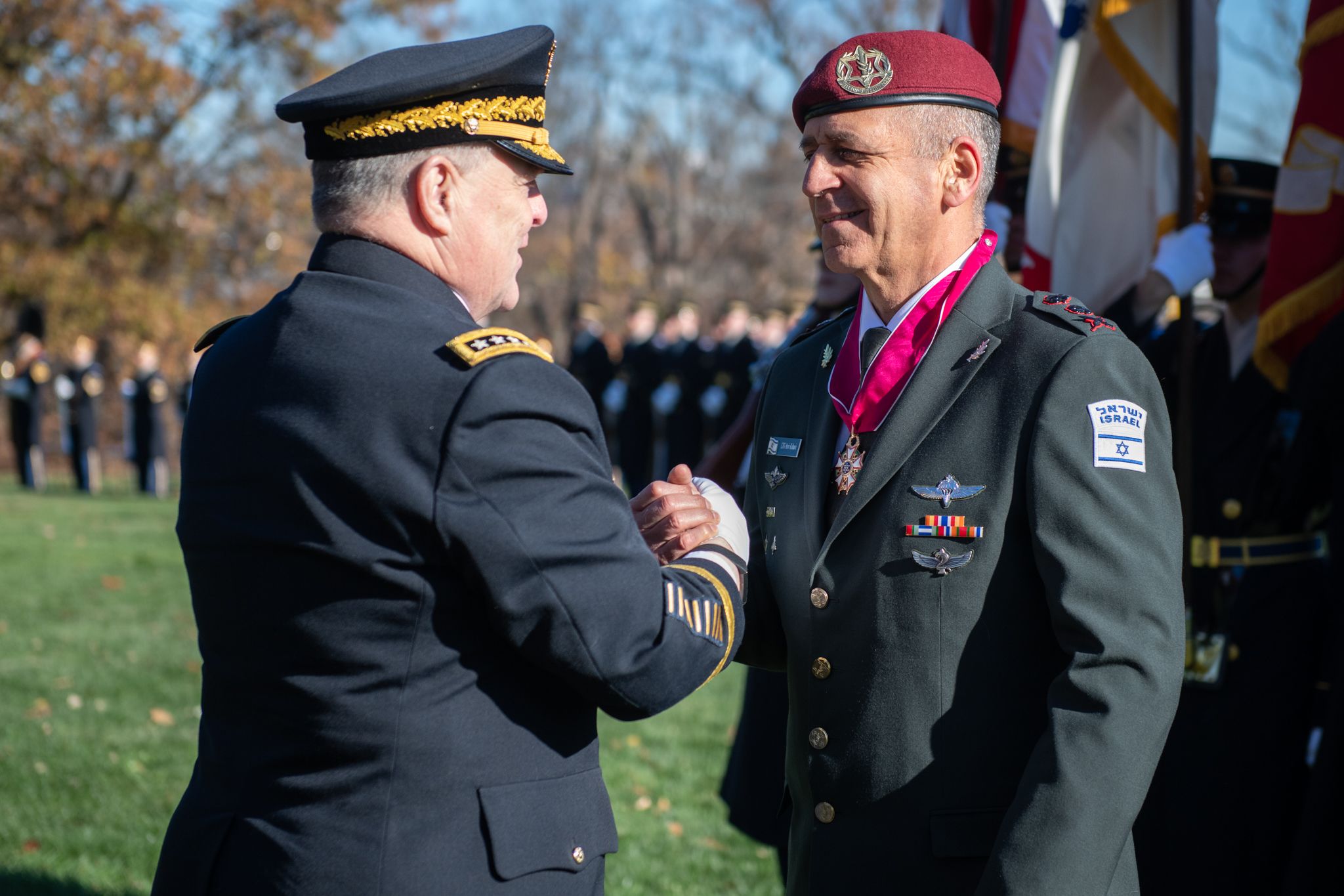 تسلّم الجنرال كوخافي الوسام من رئيس هيئة الأركان المشتركة الأمريكية الجنرال مارك ميلي، باسم رئيس الولايات المتحدة، وذلك في حفل رسمي أقيم اليوم في منزل رئيس هيئة الأركان