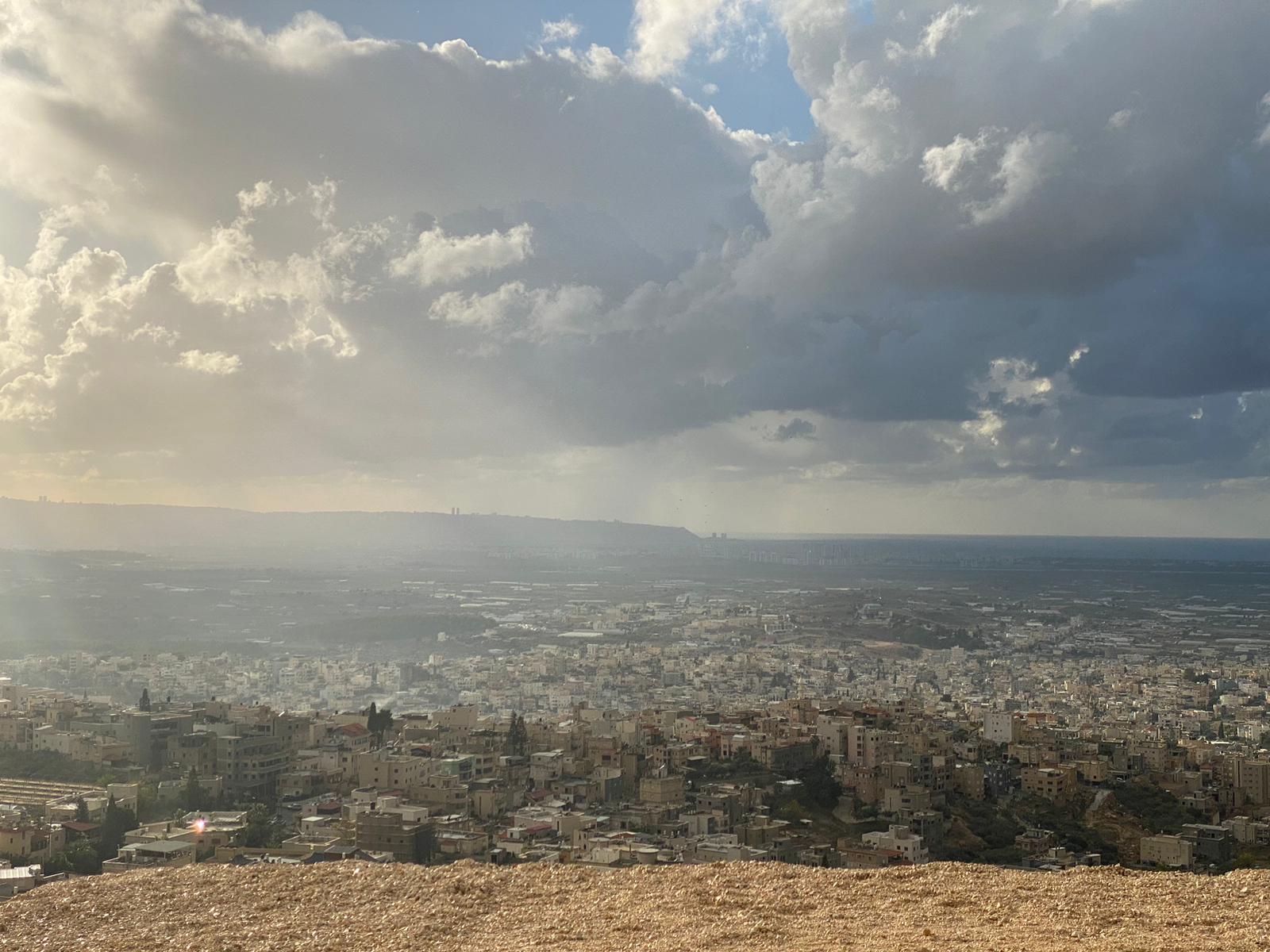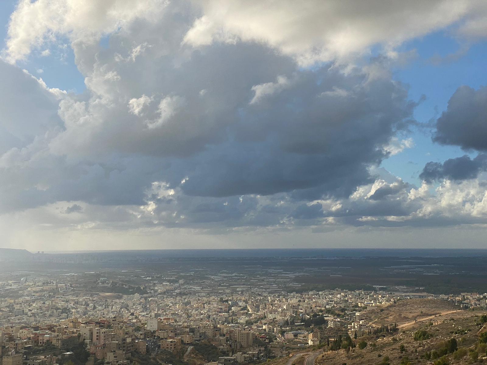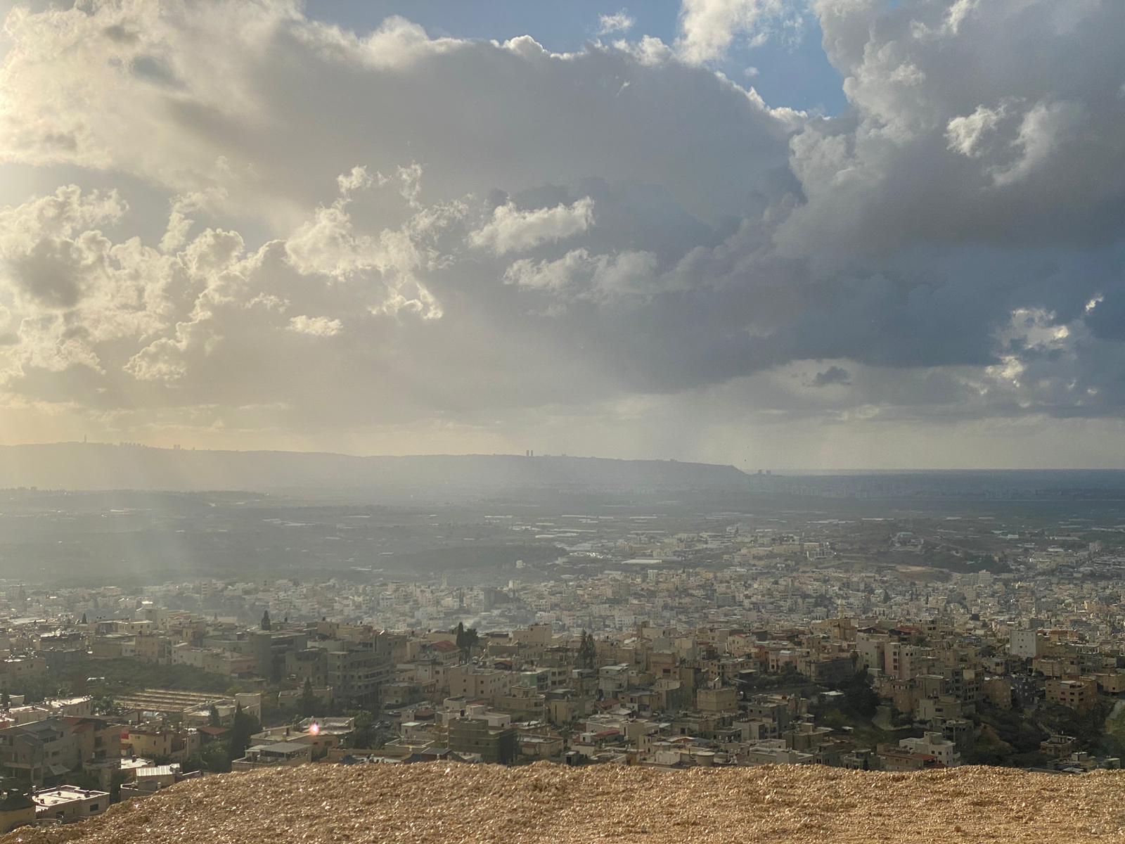 الممتد من خليج حيفا وصولا الى راس الناقورة ، وذلك من ارتفاع 280 مترا من جبل الصنيبعة المحاذي لمدينة شفاعمرو وقرية عبلين ومدينه طمرة وقريه كابول ، حيث غطت السماء الغيوم الداكنة .