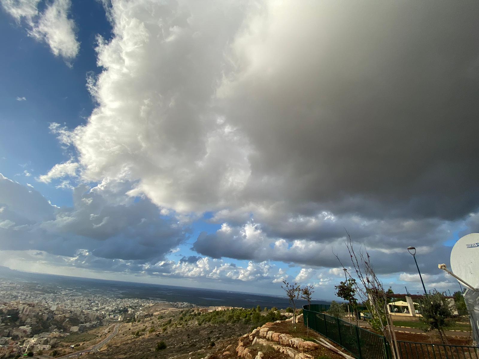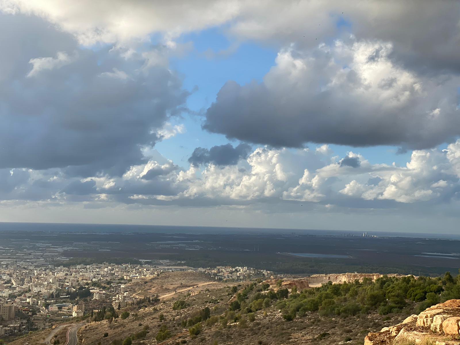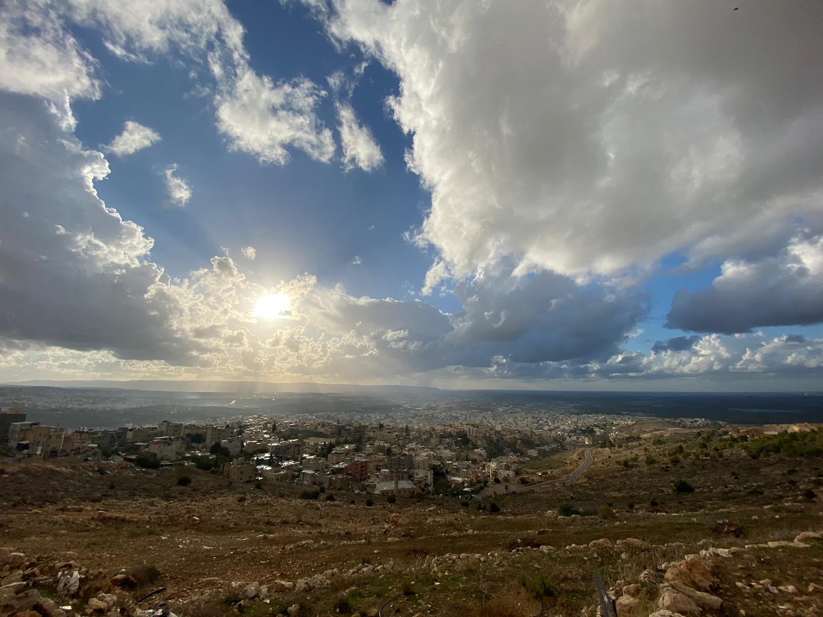 الممتد من خليج حيفا وصولا الى راس الناقورة ، وذلك من ارتفاع 280 مترا من جبل الصنيبعة المحاذي لمدينة شفاعمرو وقرية عبلين ومدينه طمرة وقريه كابول ، حيث غطت السماء الغيوم الداكنة .