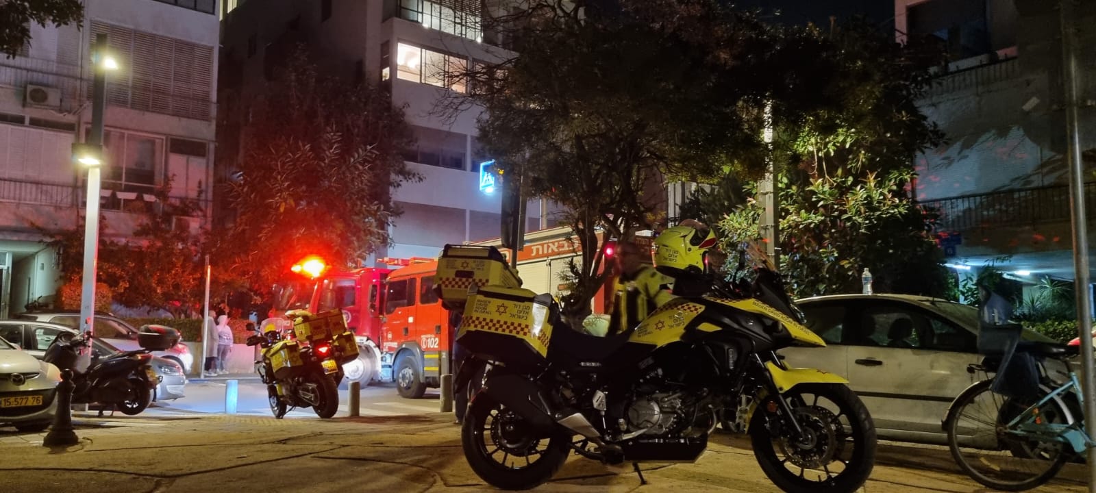 وأفادت المصادر الطبية انه نتيجة للحريق قدمت الطواقم الطبية التابعة لنجمة داوود الحمراء العلاج الأولي لمصابين ( رجل 68 عاما وصفت اصابته بالخطيرة ) و ( سيدة في السبعين من عمرها وصفت اصابتها بالطفيفية ) ومن ثم تم نقلهما لتلقي العلاج في مستشفى ايخيليف .