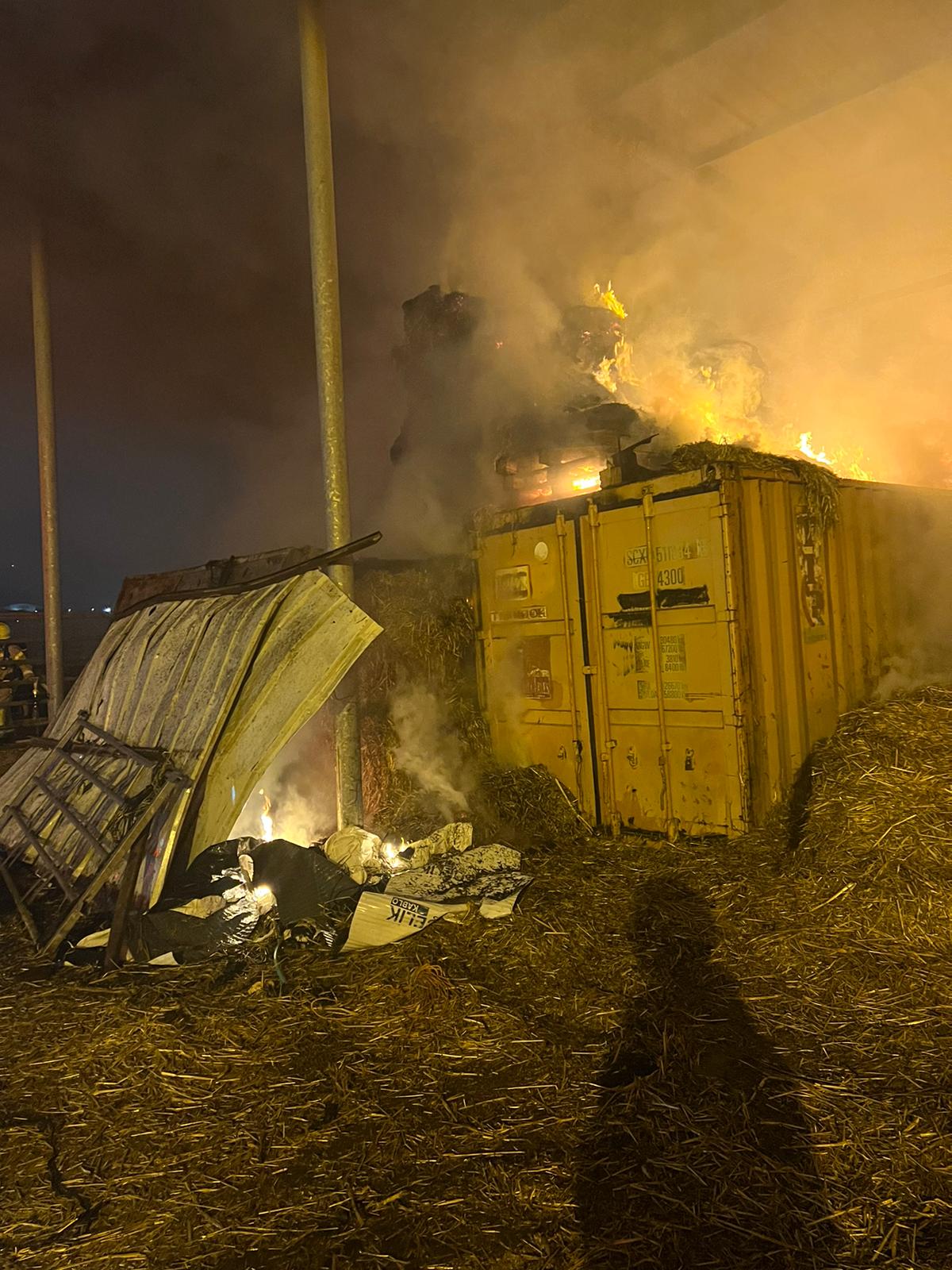 احيهود : حريق كبير في بالات قش