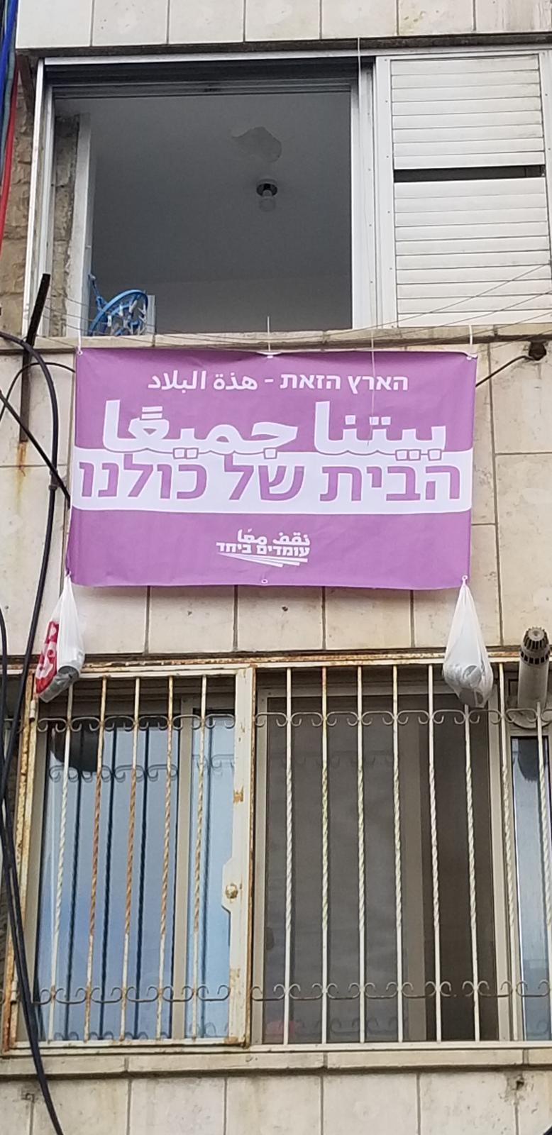احتجاج جديد في الشوارع : تعليق لافتات على آلاف البيوت في البلاد ‘ هذا بيتنا جميعا ‘ - تصوير مستشىف رمبام