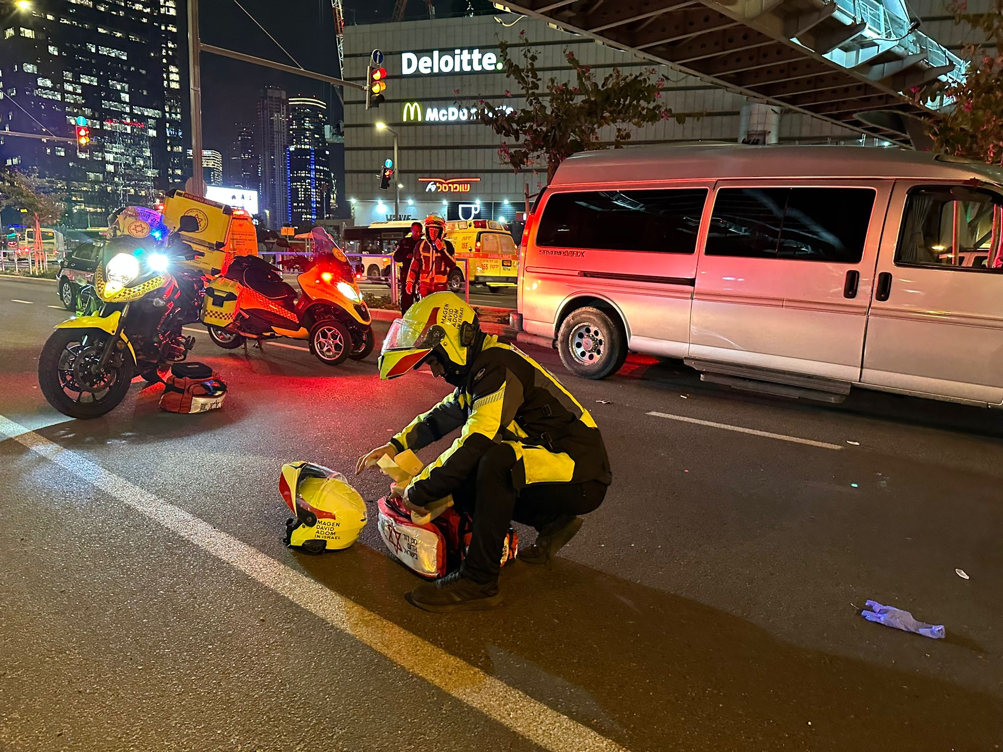 رجل بحالة حرجة اثر تعرضه للدهس في تل أبيب - تصوير نجمة داوود الحمراء