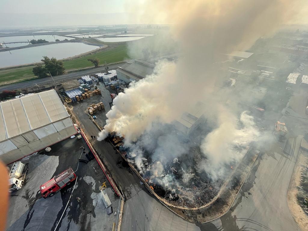 بيت شان : إندلاع حريق في مصنع للألواح الخشبية - تصوير سلطة الاطفاء والانقاذ