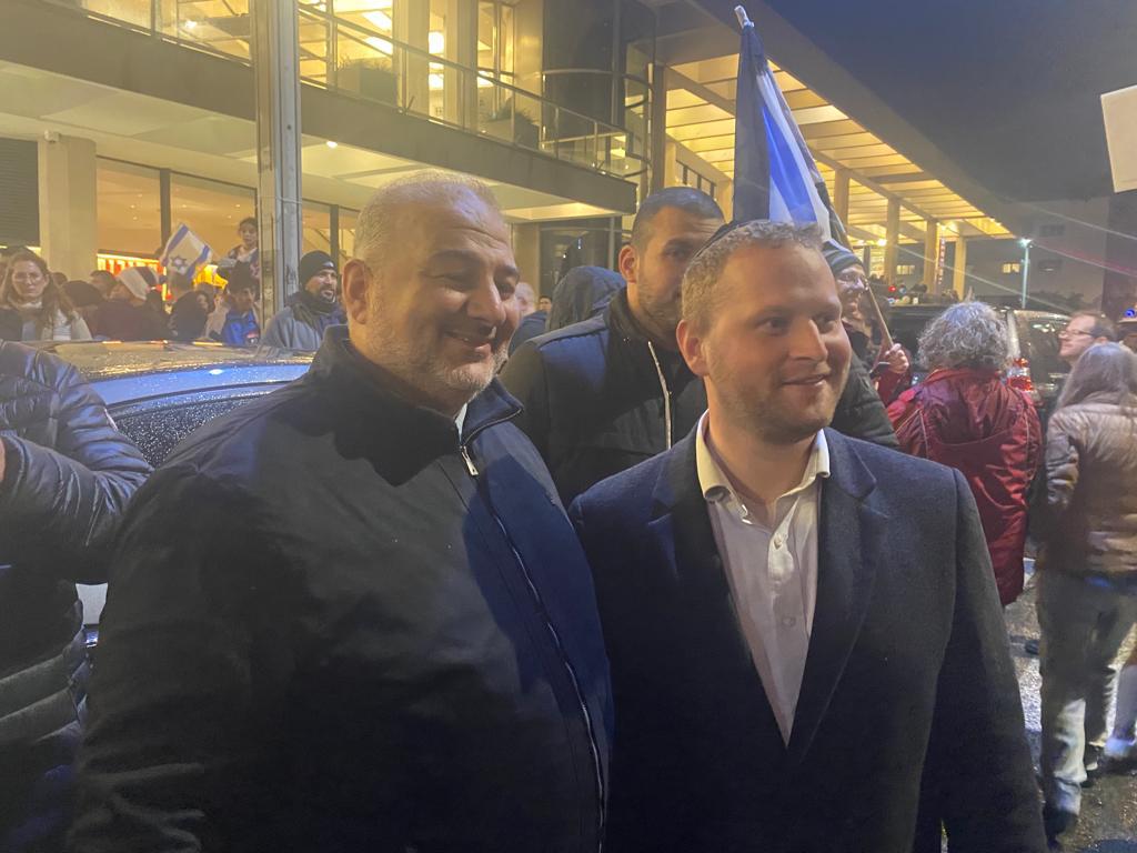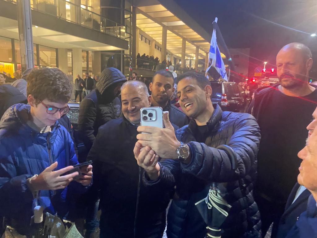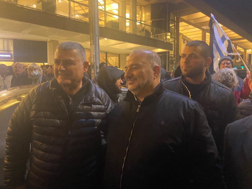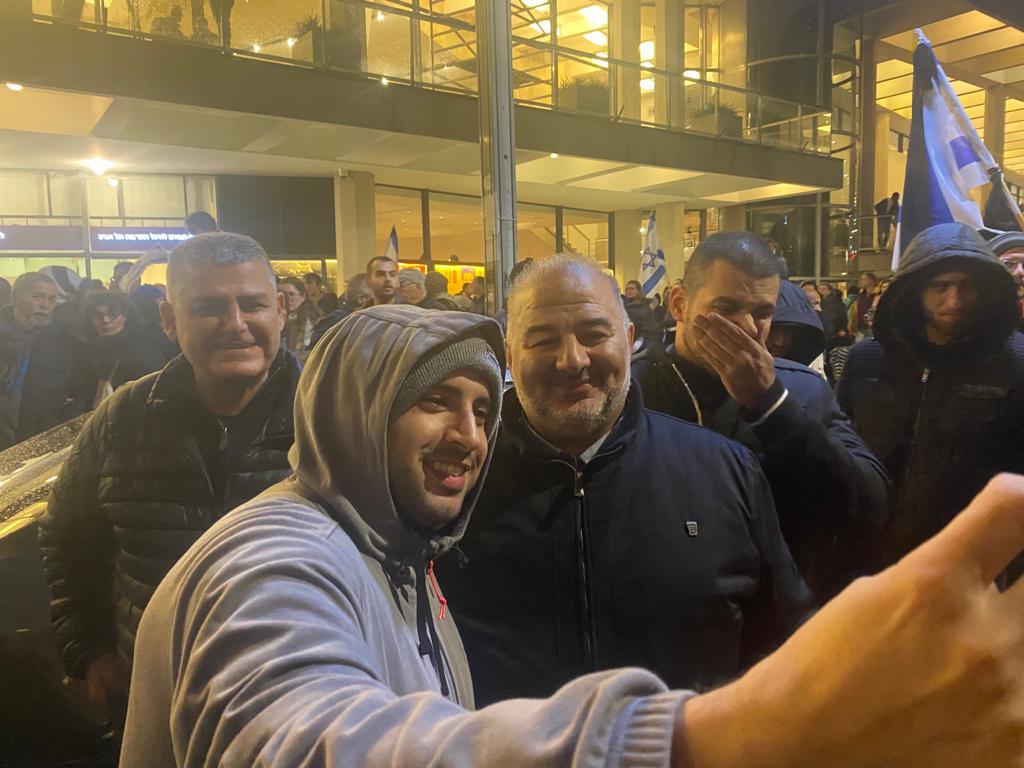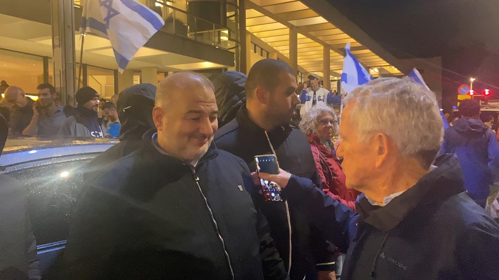 النائب منصور عباس يشارك في تظاهرة تل أبيب ضد خطة ‘ الاصلاحات ‘ في الجهاز القضائي