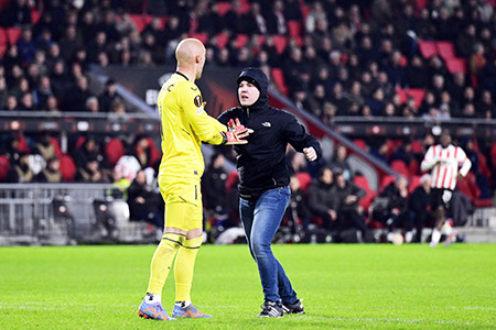 وتوقفت المباراة، التي أقيمت على ملعب أيندهوفن، خلال الدقائق الأخيرة بعد أن ركض مشجع إلى أرض الملعب واعتدى على ديميتروفيتش ولكمه في وجهه قبل أن يتدخل الحارس الصربي ويسقطه أرضا.