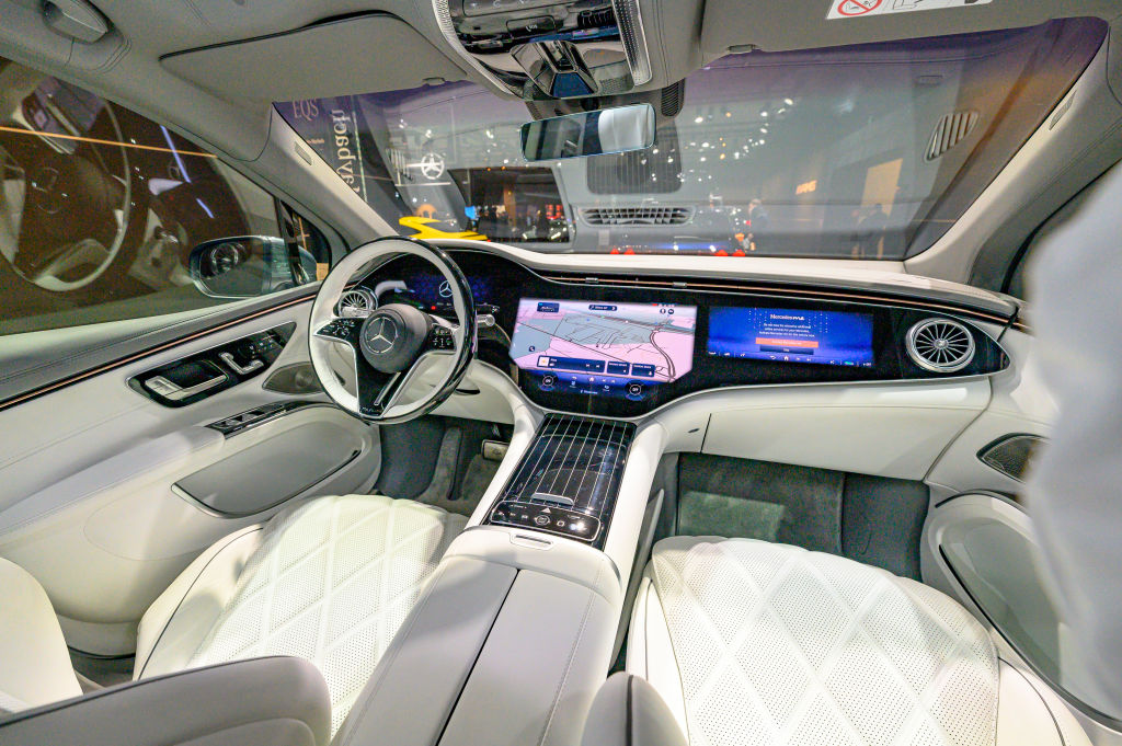 تأسر هذه التحفة الأنظار، التي تعتبر أجدد سيارات مايباخ، بطلاء خارجي فريد يمزج بين الأبيض المعدني Manufaktur Moonlight White في الجزء السفلي، والأخضر العميق Manufaktur Mid Ireland Green في الجزء العلوي. الإلهام جاء من غابات الأرز الكثيفة في مونتيري وشاطئ بيبل – Pebble Beach المذهل، مما يوفر لوحة ألوان تنطق بالأناقة وتمنح السيارة حضورًا لا مثيل له.