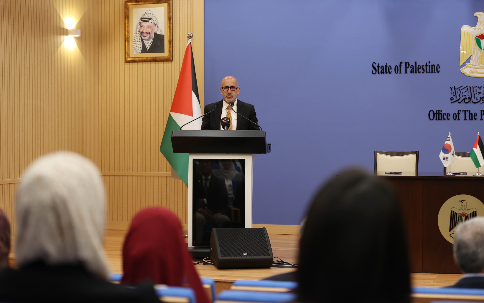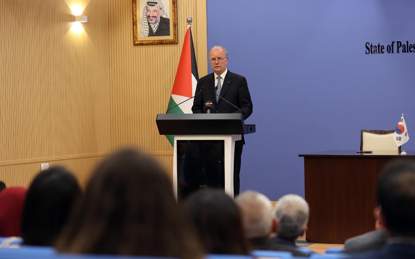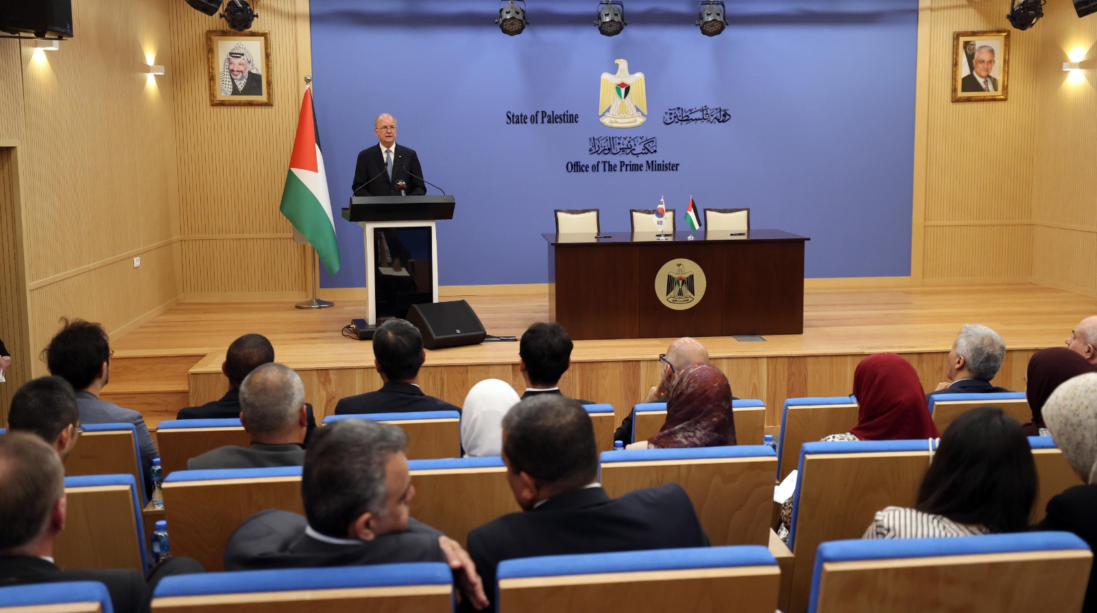 وأضاف رئيس الوزراء: "شعبنا في سباق مع الزمن ومع الاحتلال، الكل يريد أن يثبت روايته ورؤيته على أرض الواقع، فكل محاولات الاحتلال تسعى لمنعنا من تجسيد دولتنا على الأرض، ونحن في المقابل نعمل مع الأصدقاء من كل أنحاء العالم بما في ذلك الأصدقاء من كوريا من أجل حق شعبنا في قيام دولته المستقلة، لأن هذا حق طبيعي يدعمه كل الشرفاء والأصدقاء في العالم، ونذكر أن برنامج دولة فلسطين السياسي والدبلوماسي يحقق إنجازات كثيرة ومتعددة، حيث أن الاجماع الذي حصل في المؤتمر الدولي في نيويورك قبل أسابيع خير دليل على اهتمام العالم بدعم جهود القيادة الفلسطينية من أجل تحقيق وتجسيد دولتنا على الأرض".