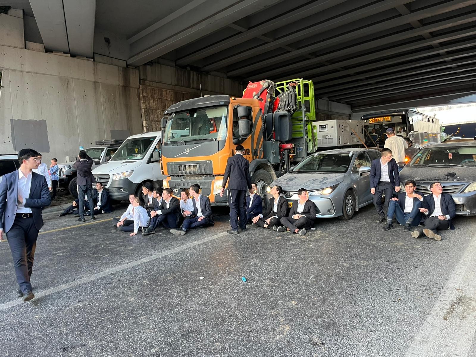 ازدحامات في مدخل ‘جسر الأوتار‘ في القدس بسبب مظاهرة ضد تجنيد الحريديم
