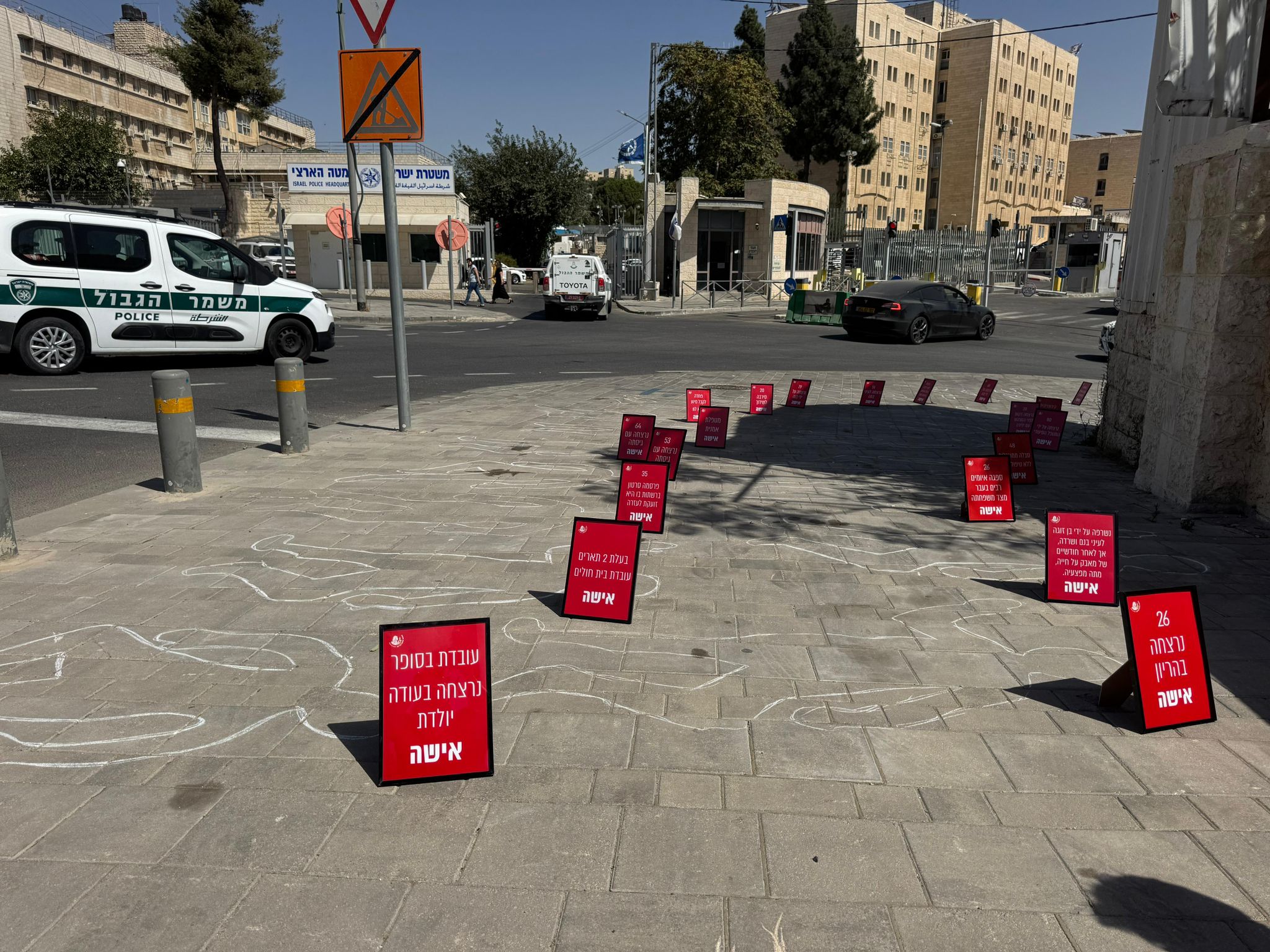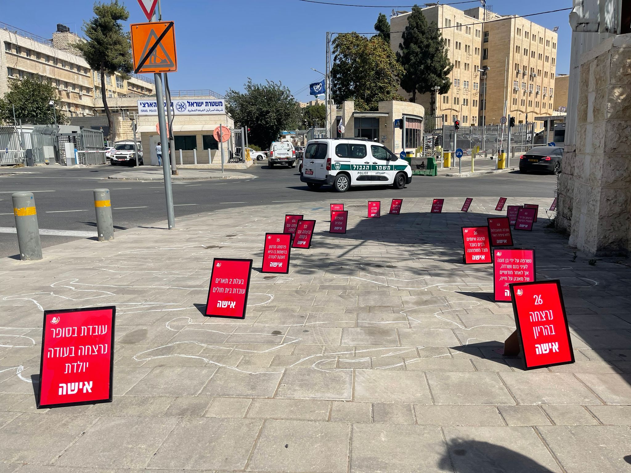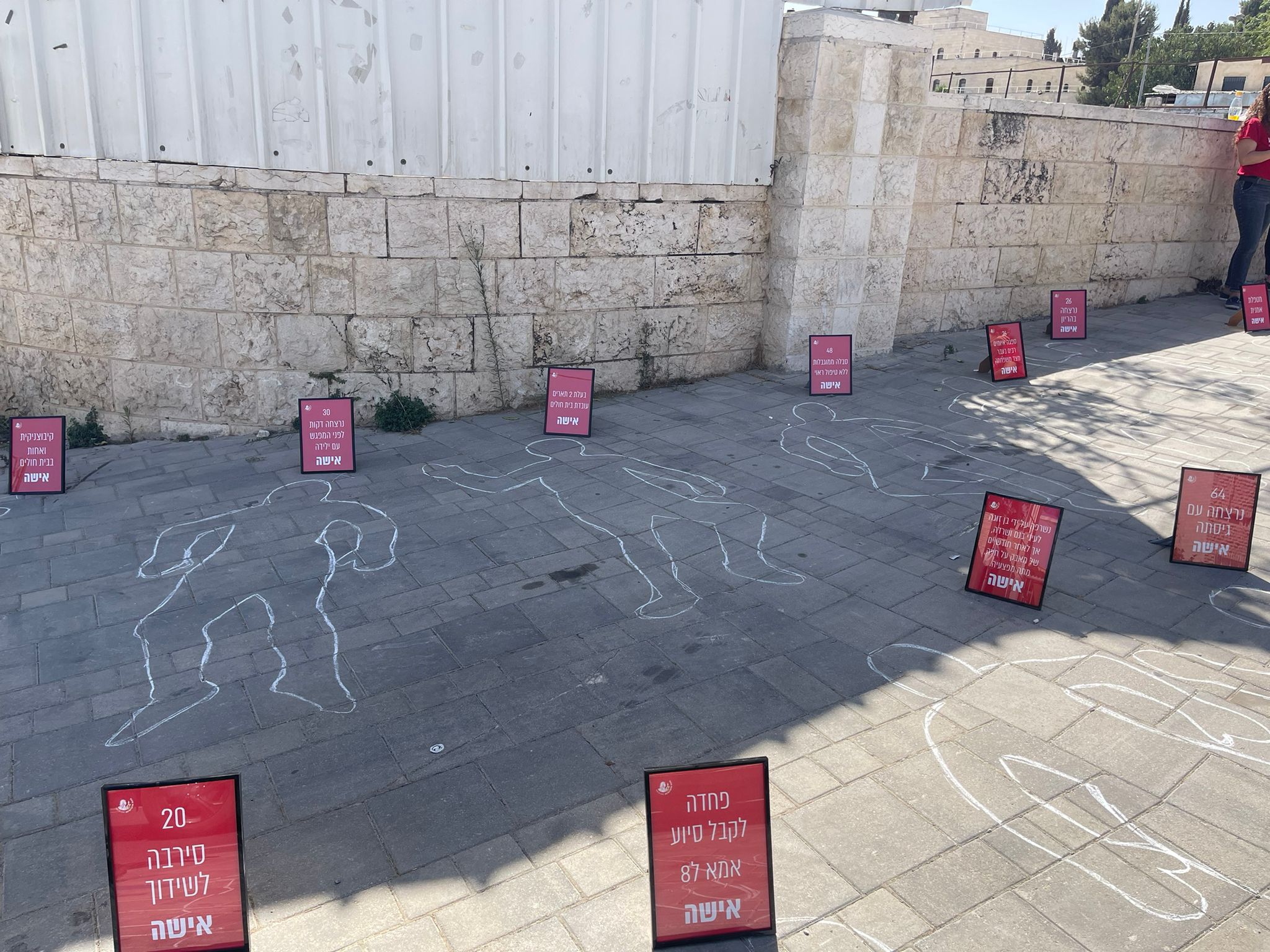 تم وضع خطوط طباشير على الأرض لتحديد كل "موقع جريمة"، وبجانبها لافتات تحمل عبارات شخصية عن الضحايا، تنتهي جميعها بالجملة: "امرأة". وأوضحت المنظمات، ان هذا العرض الاحتجاجي يقام قبل يوم واحد من رأس السنة العبرية وبداية الأعياد اليهودية، وهي فترة يُسجل فيها ارتفاع في حالات قتل النساء، وخصوصًا داخل العائلة.