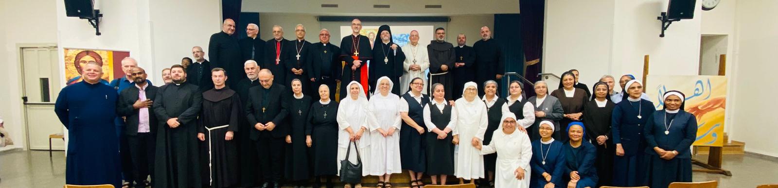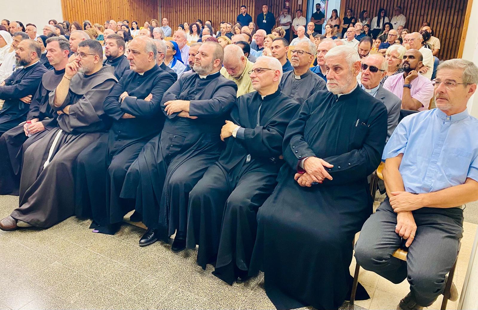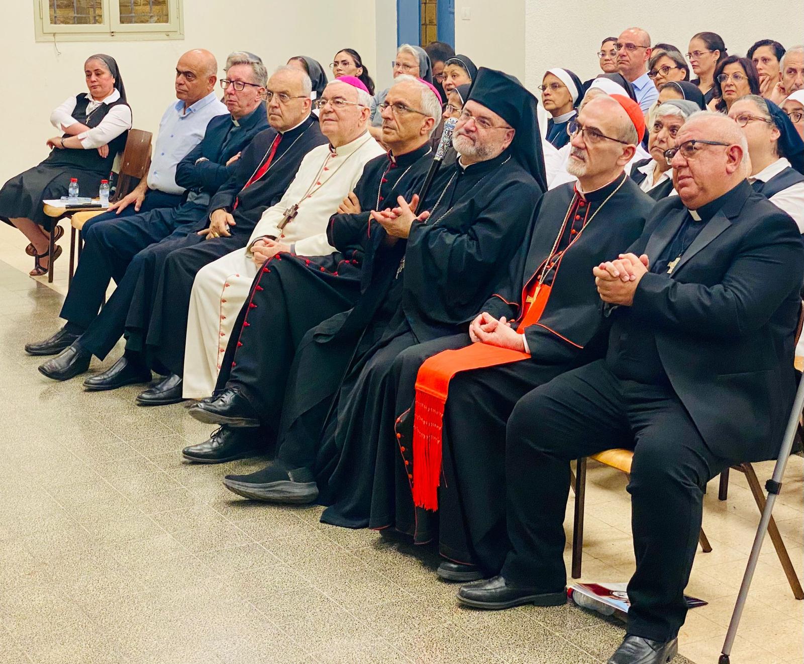 بحضور نيافة الكاردينال بيير باتيستا بيتسا بالا، بطريرك القدس للاتين، اصحاب السيادة المطران رفيق نهرا، المطران بولس ماركوتسو، المطران يوسف متى، المطران موسى الحاج، كهنة الرعايا والراهبات
