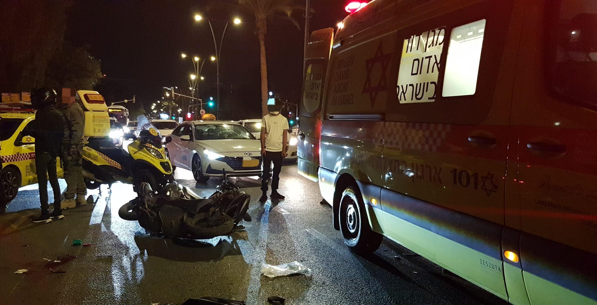 وقال المضمد في وحدة الدراجات النارية التابعة لنجمة داوود الحمراء ، حاييم شافيط : "عندما وصلنا إلى مكان الحادث رأينا سائق الدراجة النارية وهو بوعي تام بعد أن صدمته المركبة. أجرينا له بسرعة فحوصات طبية، ولاحظنا أنه يعاني من إصابات خطيرة في الرأس والحوض. بدأنا على الفور بتقديم العلاج الطبي الاولي، والذي شمل تضميد الجروح ووقف النزيف، ومع الاستمرار في إعطائه العلاج الدوائي، قمنا بنقله إلى المستشفى، حيث وُصفت حالته بالخطيرة " .
