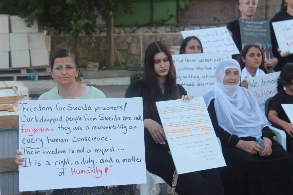 ورفع المشاركون الشعارات المنددة بـ " الحصار المفروض على السويداء "، وطالبوا بـ " الإفراج الفوري عن جميع المختطفات والمختطفين "، مؤكدين أن "استمرار هذه الممارسات يشكل جريمة إنسانية وانتهاكا صارخا للحقوق الأساسية ".