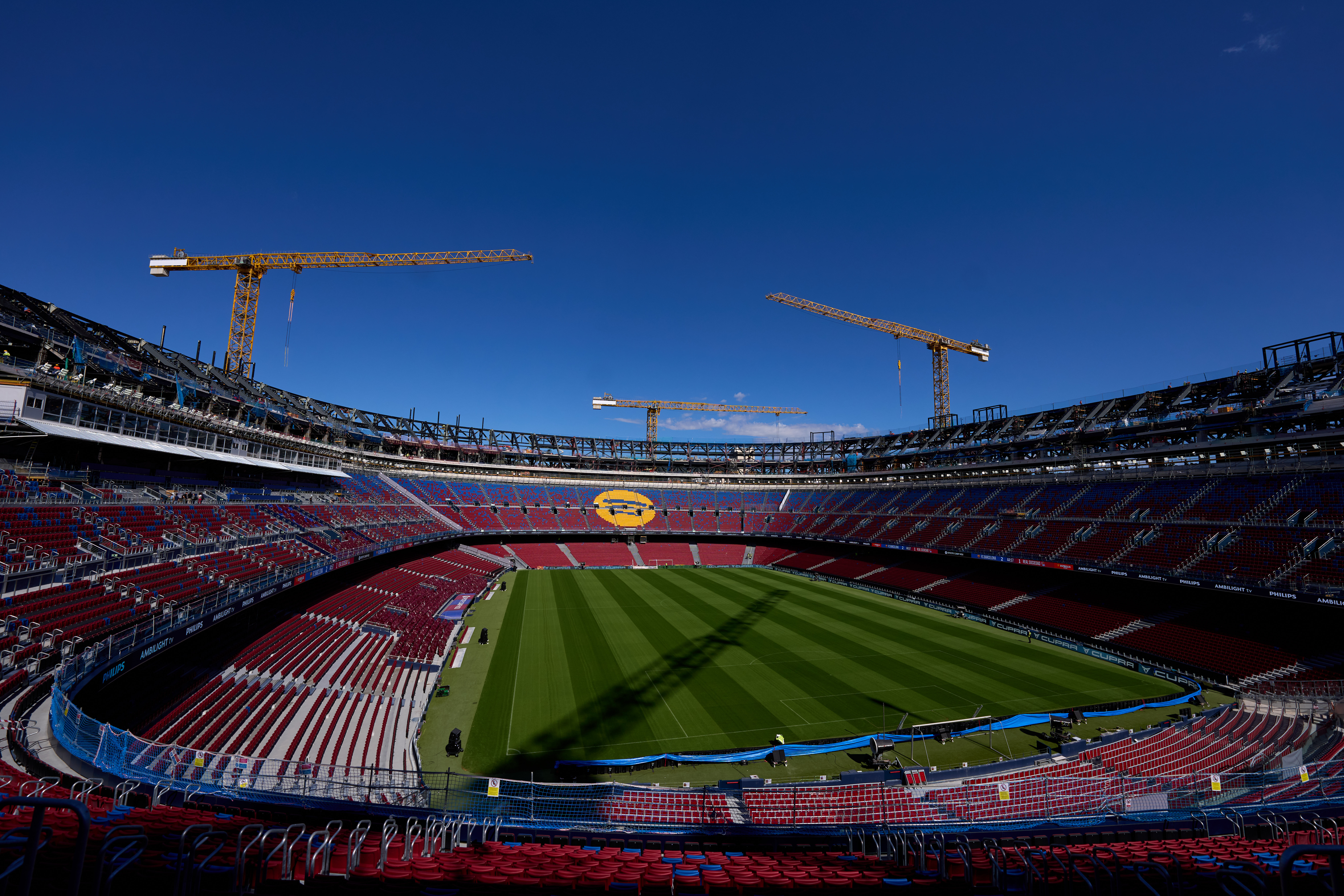 واضطر برشلونة لبدء مشواره في الدوري الإسباني على ملعب يوهان كرويف في مجمع التدريب الخاص به حيث حضر ستة آلاف مشجع فقط مباراته أمام بلنسية في 14 سبتمبر أيلول بعد أن تسبب حفل للمغني بوست مالون في تدهور حالة أرضية ملعب لويس كومبانيس.وقال برشلونة في بيان "يعمل النادي حاليا على التعديلات الجديدة التي أطلعنا عليها المجلس اليوم".