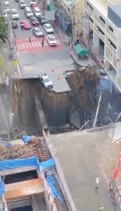 حفرة عملاقة تبتلع شارعا رئيسيا في العاصمة التايلاندية بانكوك | فيديو متداول تم نشره بحسب البند27 أ من قانون حقوق النشر