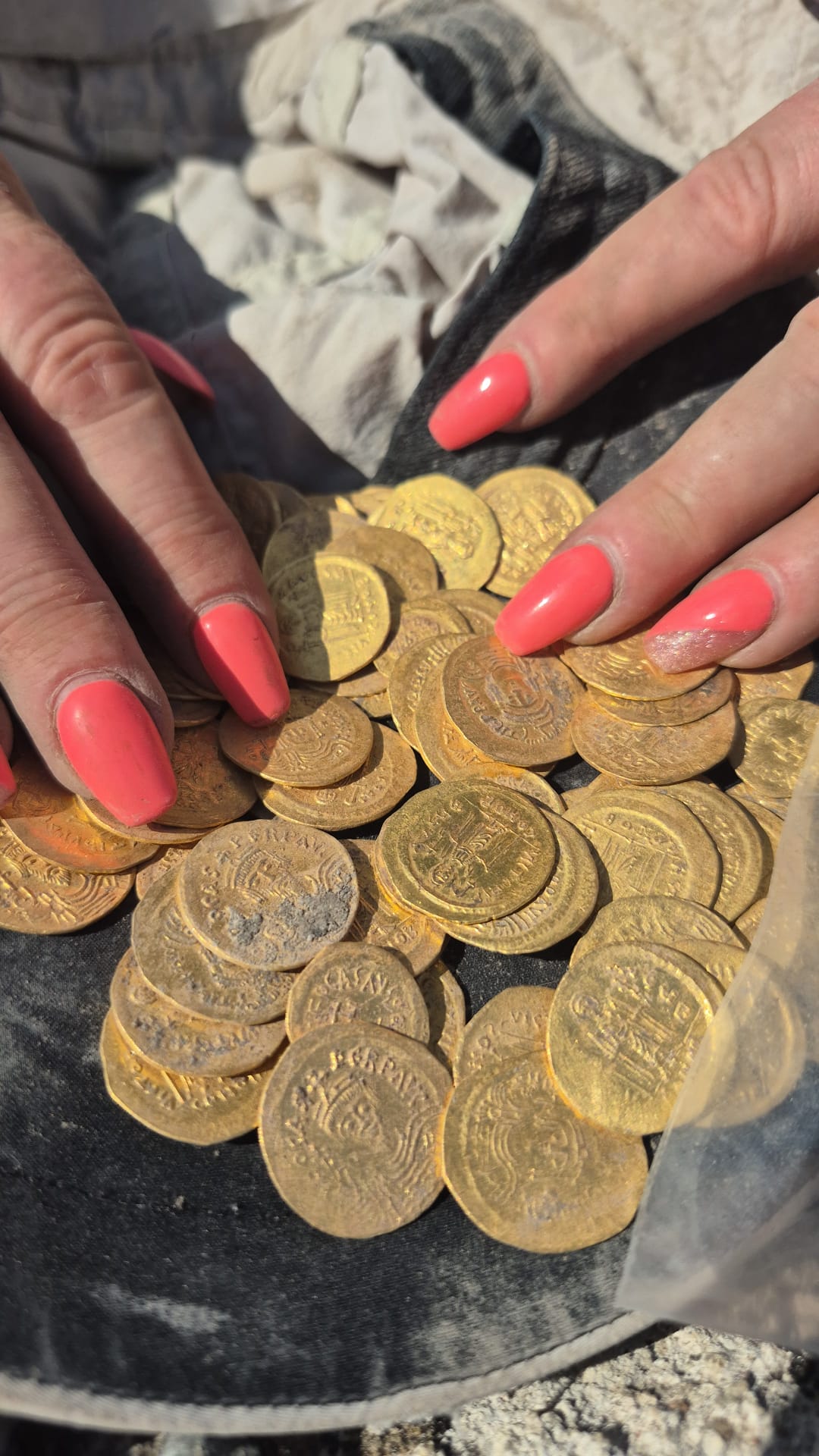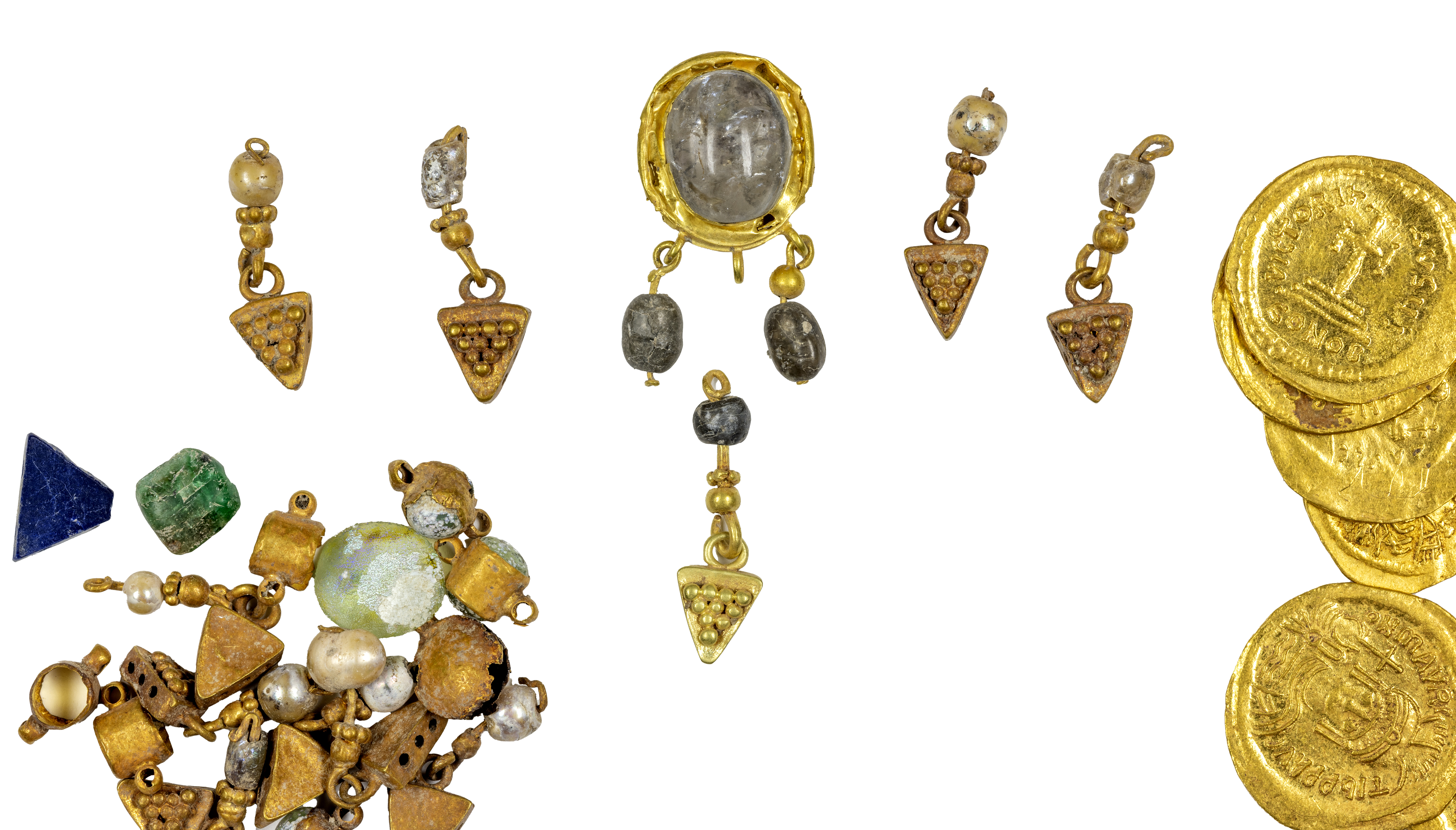 عن كنز ذهبي نادر من العصر البيزنطي. ويتضمن الكنز 97 عملة ذهبية نقية وعشرات القطع من الأقراط الذهبية المرصعة باللؤلؤ والأحجار شبه الكريمة والزجاج.