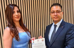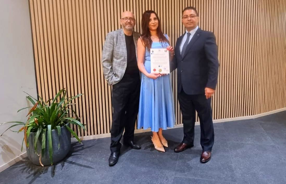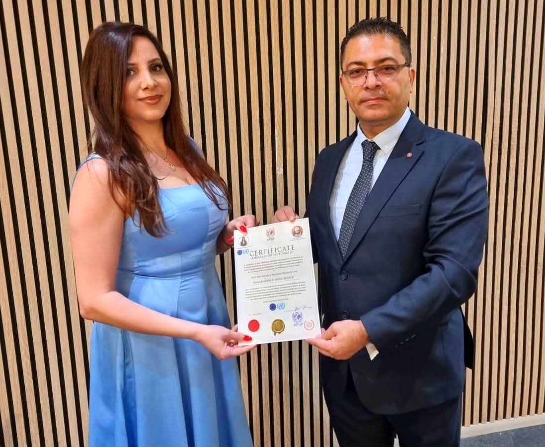 وخلال الحدث، جرى تكريم الأستاذة نيروز إرشيد من قرية الرامة – الجليل، حيث مُنحت شهادة سفير دبلوماسي رسمي، تقديرًا لإسهاماتها في دعم قضايا السلام وتعزيز قيم التعايش. وفي كلمة لها، عبّرت الأستاذة إرشيد عن امتنانها لهذه الثقة، وقدّمت بدورها للحضور شهادة سفير السلام، تأكيدًا لرسالة التعاون الدولي وتعزيز جسور التفاهم بين الشعوب.
