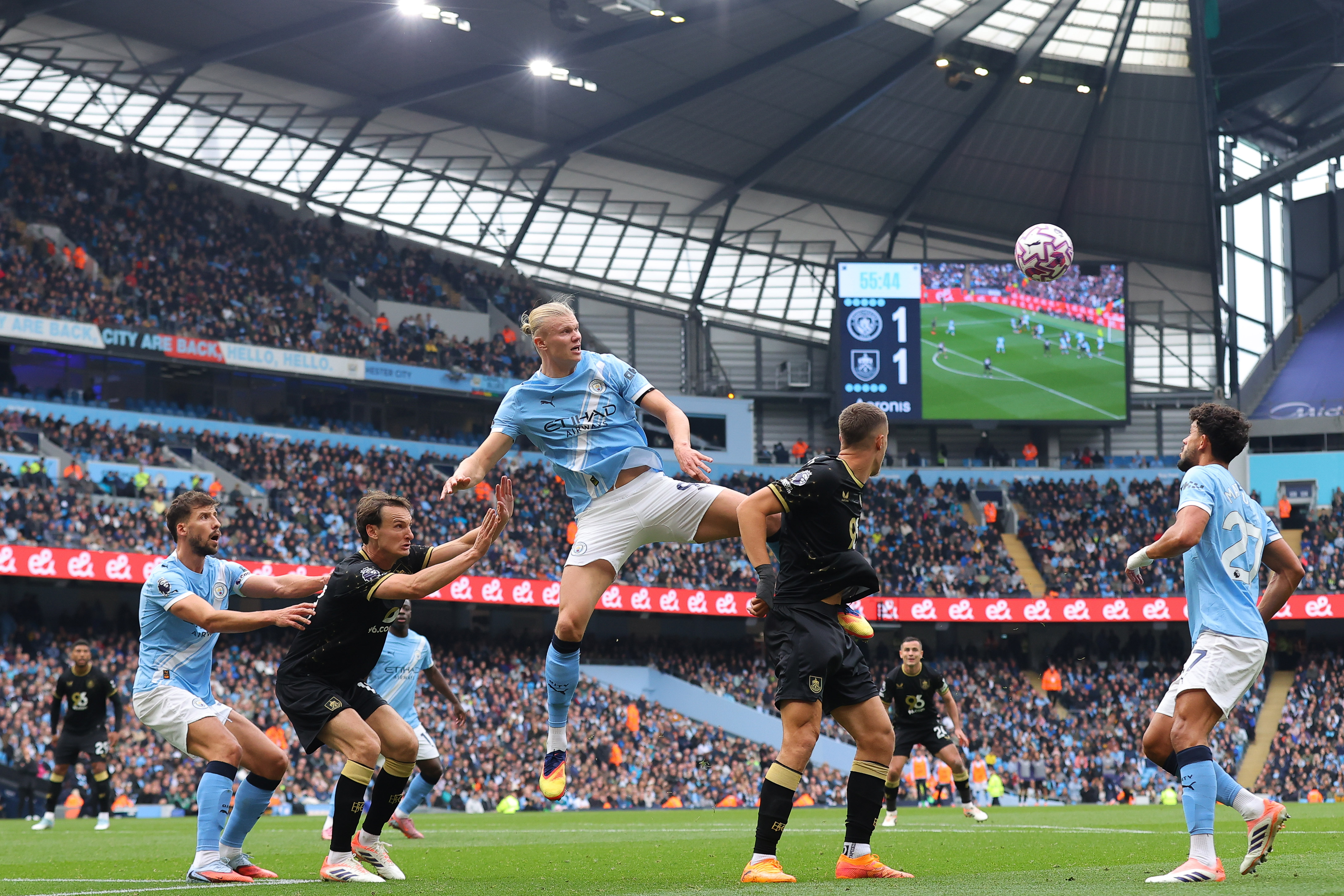 هدفان عكسيان وثنائية لهالاند في انتصار ساحق لسيتي 5-1 على بيرنلي