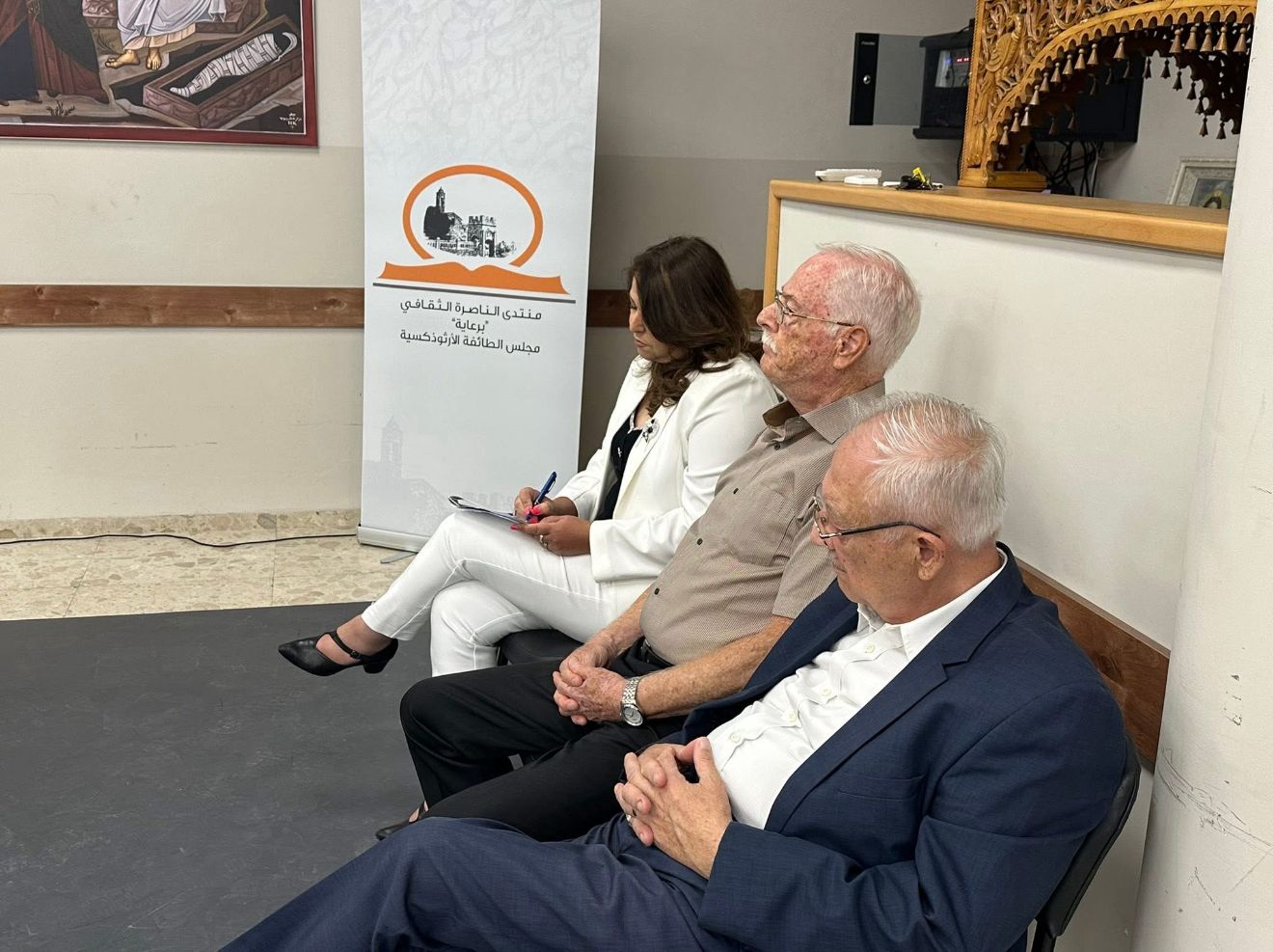 تواصل البرنامج بكلمة ألقاها رئيس مجلس الطائفة الأرثوذكسية، المحامي بسيم عصفور، الذي أثنى على عمل المنتدى واللجنة التأسيسية، مؤكّدًا أهمية هذا المنبر الثقافي لمدينة الناصرة ولكافة بلدات المجتمع العربي. كما أشار إلى الدعم الذي يتلقّاه المنتدى من مجلس الطائفة الأرثوذكسية، الذي يسعى دومًا إلى تعزيز الحراك الثقافي والفكري وتوفير المساحات التي تحتضن الابداع.