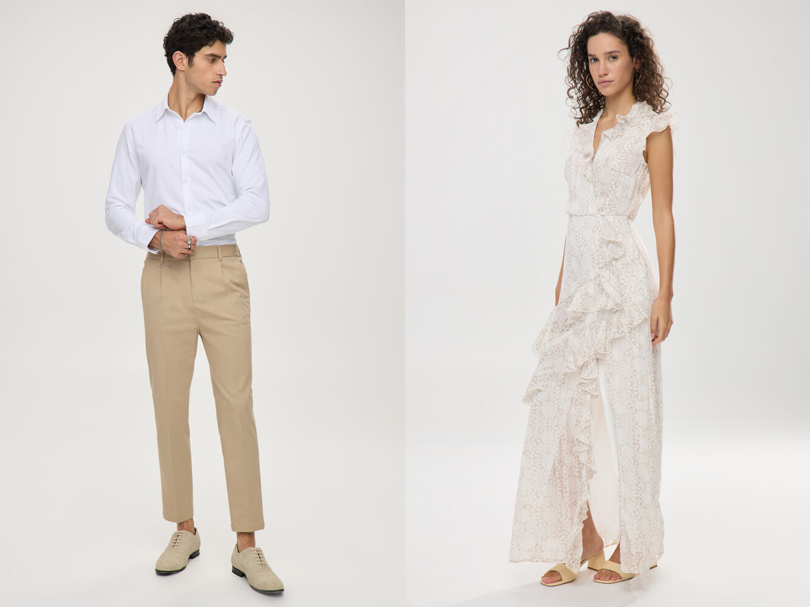 المجموعة النسائية تعرض طيفًا واسعًا من القطع – من بدلات أنيقة ذات قصّات عصرية، وصولًا إلى فساتين نسائية خفيفة، قمصان دانتيل رقيقة، وأطقم مُحاكة ناعمة. ألوانها الأساسية تتراوح بين درجات الكريمي، العاجي والبيج الأنيق، مع لمسات من الأزرق والأزرق الفاتح. إلى جانبها تبرز قطع جينز خالدة وأحذية تكمل إطلالة عصرية تجمع بين الكاجوال والأناقة. تهدف المجموعة إلى منح المرأة مظهرًا متوازنًا – من جهة نظيف ورصين، ومن جهة أخرى مُفعم بالحضور.