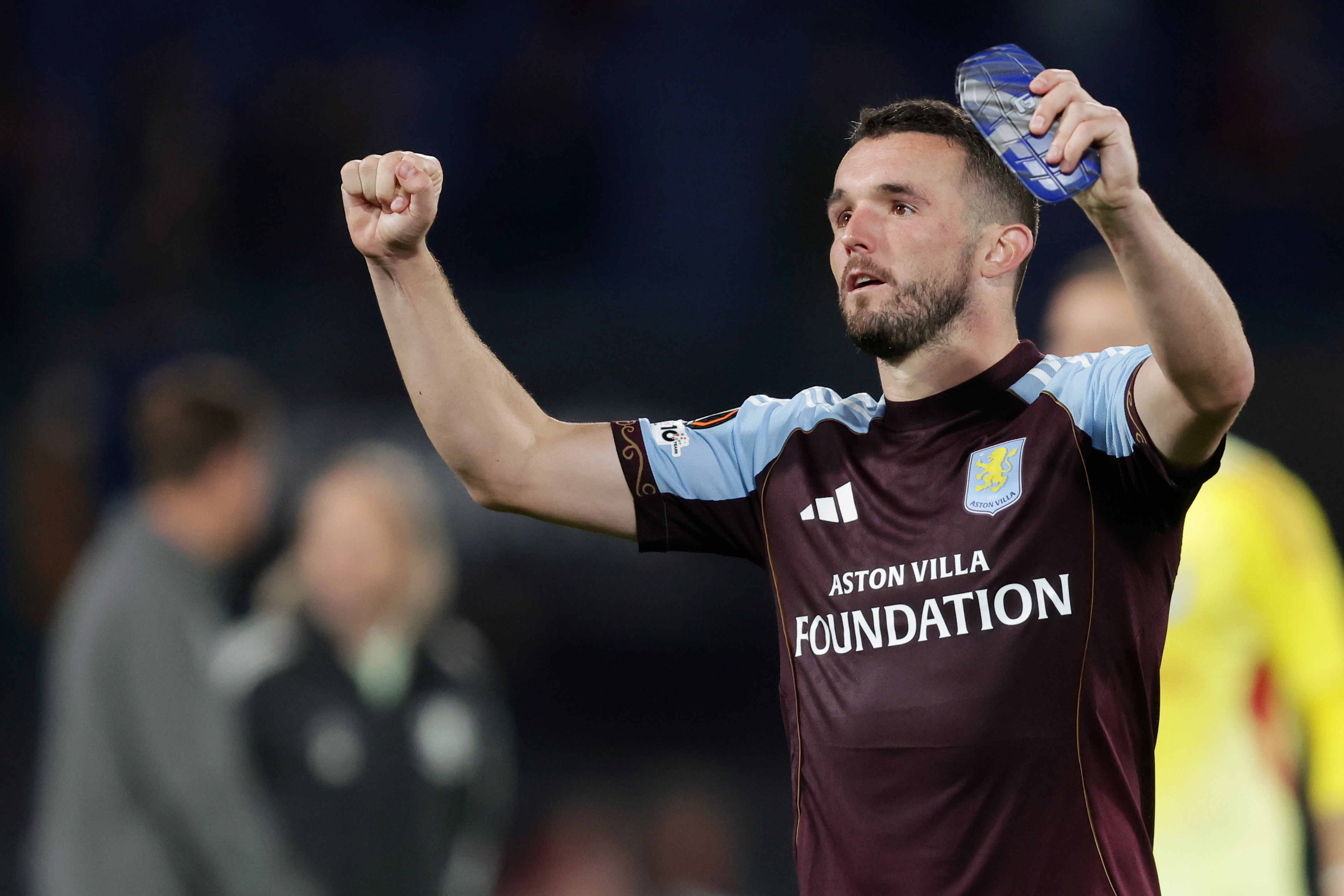 جون مكجين لاعب أستون فيلا يحتفل بفوز فريقه أمام فينوورد في مباراة ضمن الدوري الأوروبي لكرة القدم في هولندا يوم 2 أكتوبر تشرين الأول 2025 - (Photo by Pim Waslander/Soccrates/Getty Images)