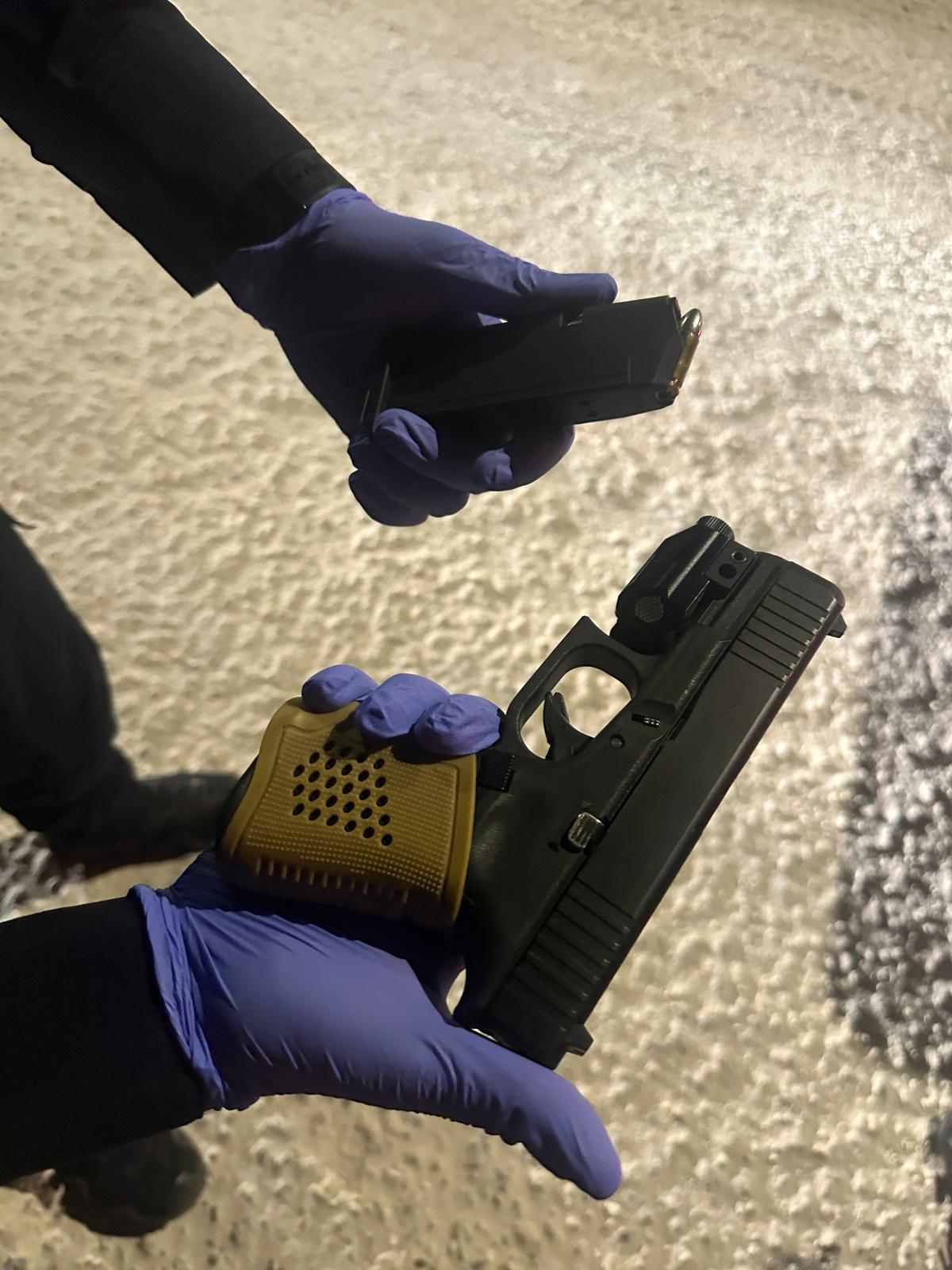 أحد أفراد الشرطة بدأ بمطاردة أحد الفارّين، وبعد عدّة دقائق، نجح في توقيفه باستخدام جهاز "تيزر"، حيث عُثر بحوزته على مسدّس من نوع "غلوك" مزوّد بجهاز ليزر.