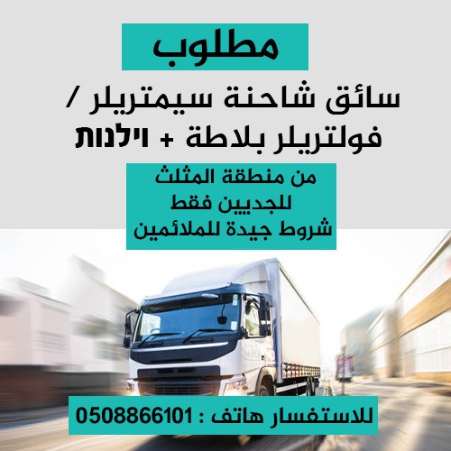 مطلوب : سائق شاحنة سيمتريلر | فولتريلر بلاطة + וילנות من منطقة المثلث