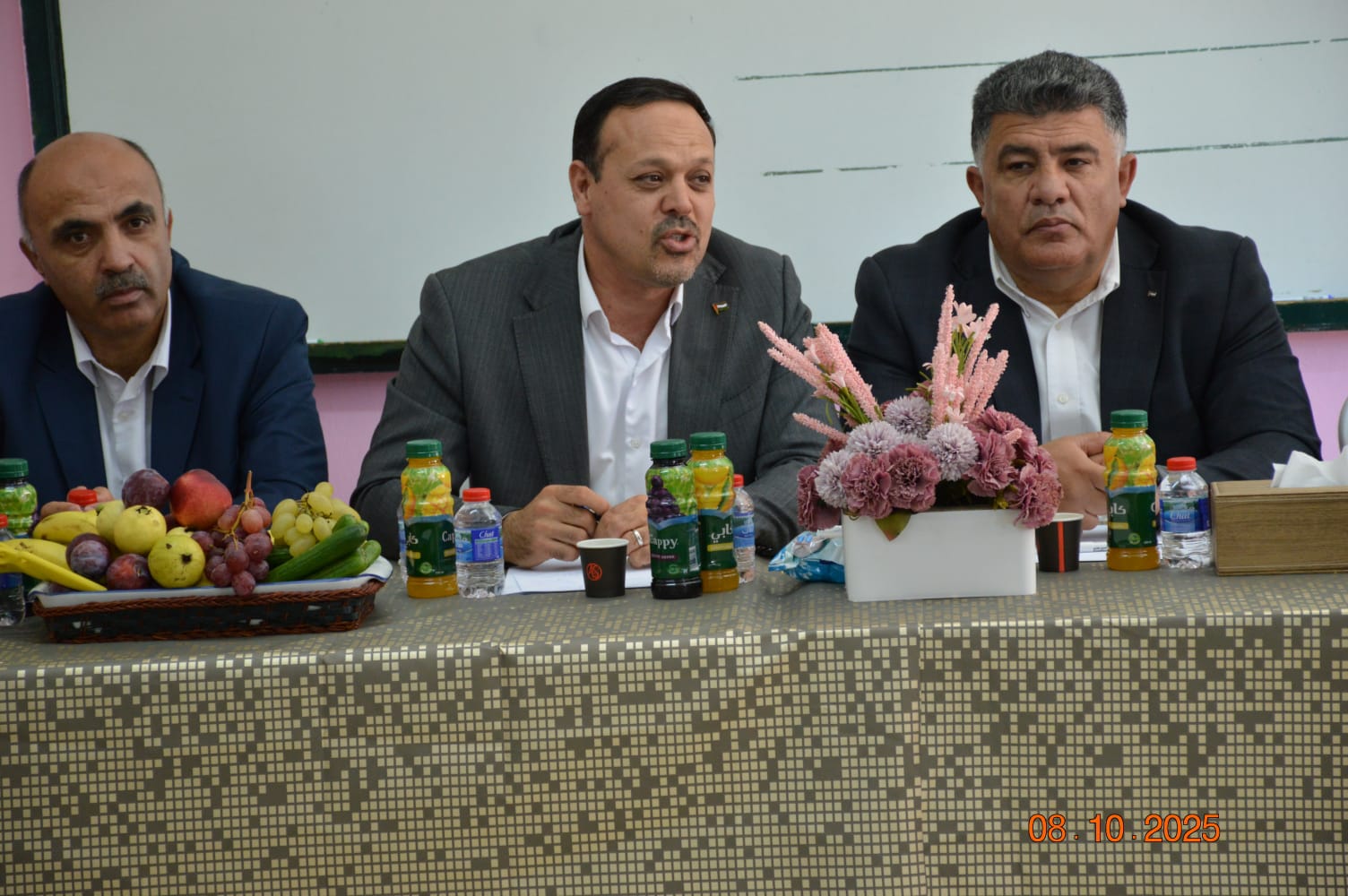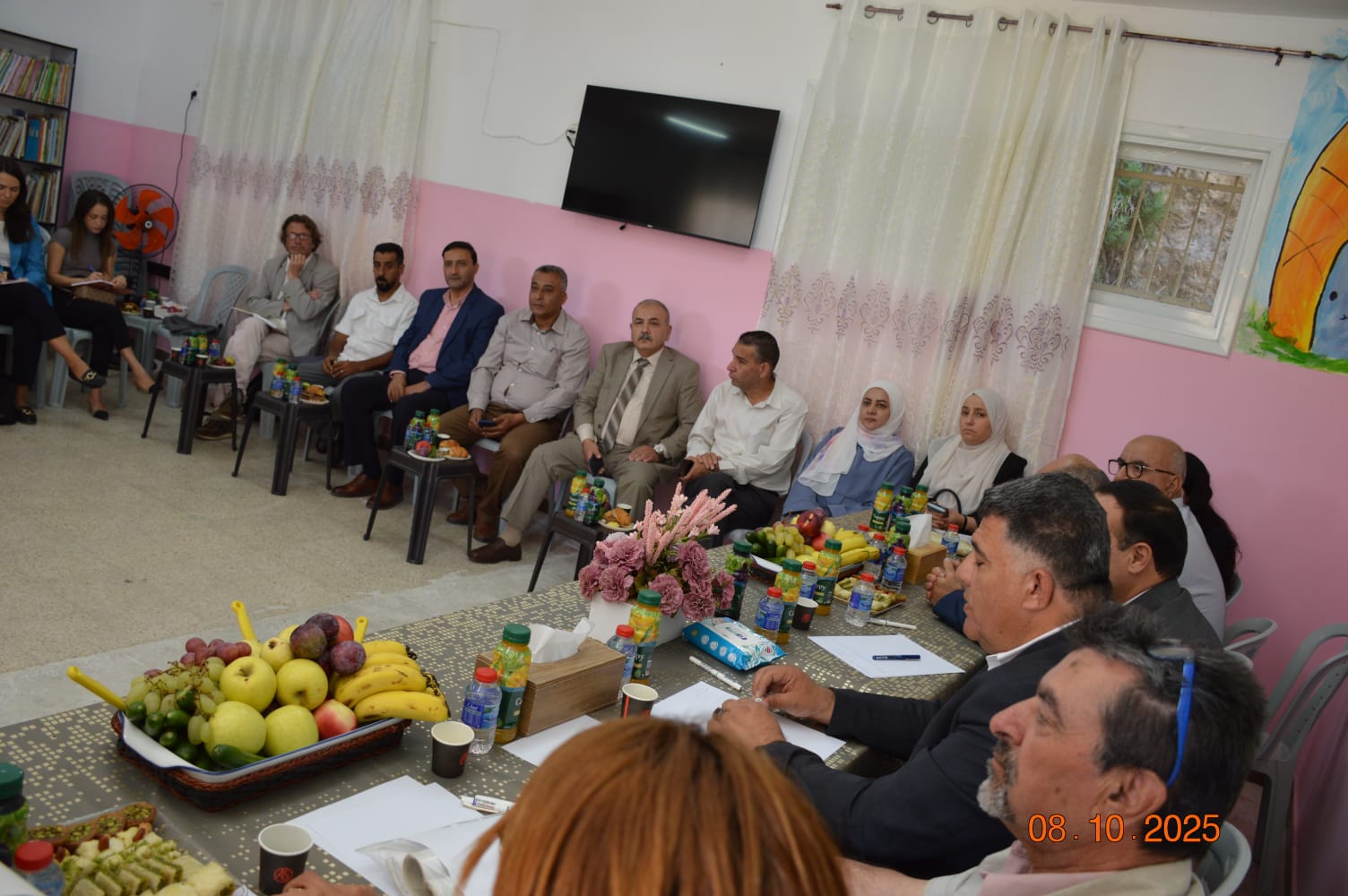 واستعرض الجمل واقع المدرسة والتحديات اليومية التي تواجهها الهيئة التدريسية والطلبة في ظل الممارسات العدوانية، مؤكدًا أن هذه الزيارات تشكّل عامل دعمٍ نفسي ومعنوي للأسرة التربوية بأكملها في حين خصص المتحدثون الآخرون حديثهم عن استعراض واقع معاناة المدرسة والمدارس المحيطة.