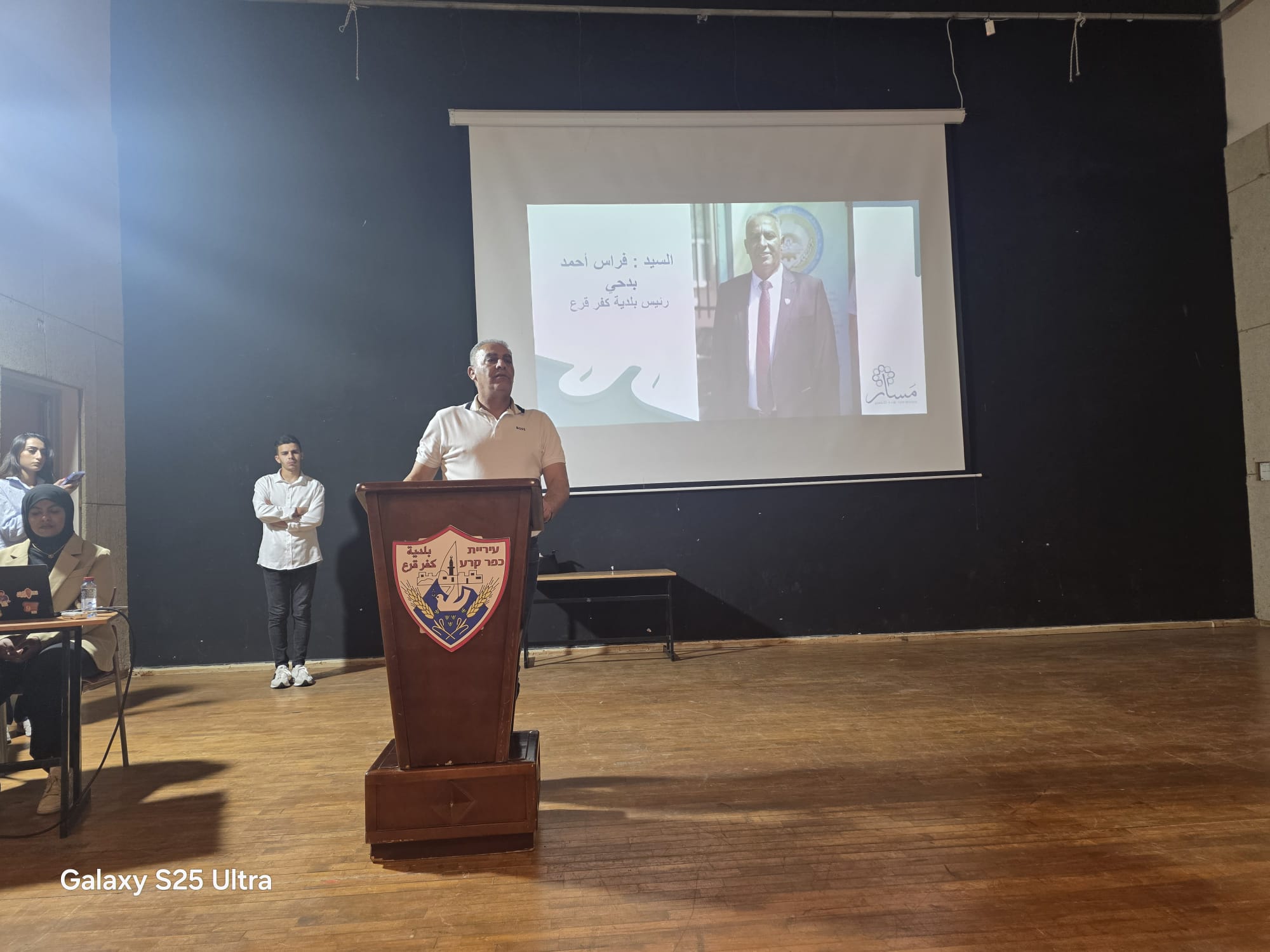 وبحضور رئيس بلدية كفر قرع المحامي فراس بدحي، ومدير عام البلدية السيد شادي رابي، ومديرة قسم الشباب السيدة سماح زحالقة، ومديرة قسم الثقافة السيدة مها مصالحة. افتتح رئيس البلدية الأمسية مؤكدًا على "أهمية التعاون بين الأهل والأبناء في دعم مسيرتهم الشخصية والمجتمعية، وتعزيز انخراط الأهالي في حياة أبنائهم الشباب، لما لذلك من أثر إيجابي على بناء جيل قيادي فاعل في مجتمعه".