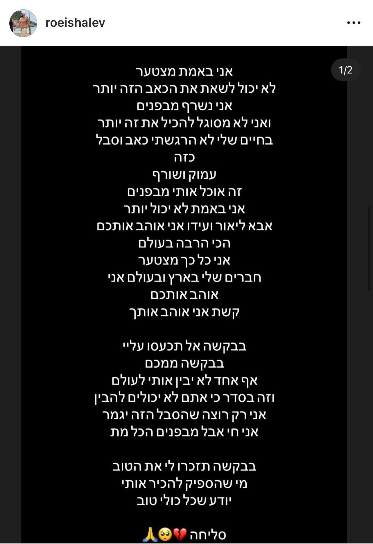 المنشور الأخير الذي نشره روعي شيلو قبل وضع حد لحياته - صورة عن صفحته على الانستغرام بدون كريديت تم نشرها حسب البند 27 أ من قانون حقوق النشر